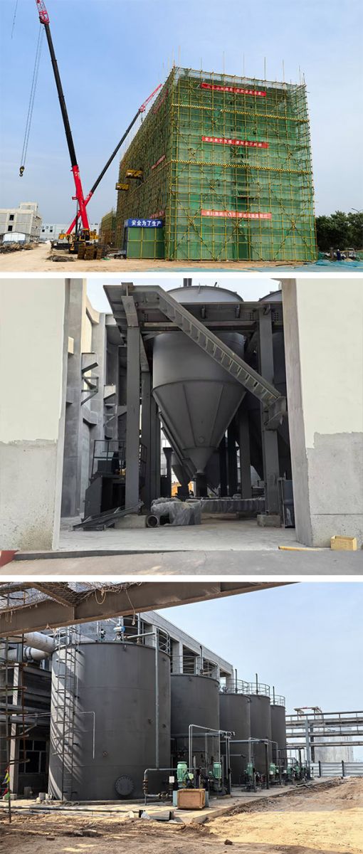 一、 硫化黑裝置總體安裝情況: 1、設備安裝情況 主體設備已安裝完成。 2、管道安裝情況 工藝管道:硫化前部、硫化、水解、尾氣已安裝完成90%。 儀表管道:硫化前部、硫化完成80%、水解安裝完成95%。 3、電氣、儀表安裝情況 硫化黑裝置配電室安裝完成80%,水解動(dòng)力、儀表電纜敷設完成,接線(xiàn)完成90%,硫化動(dòng)力、儀表電纜敷設完成,接線(xiàn)完成95%,硫化前部?jì)x表、動(dòng)力電纜正在敷設完成90%,接線(xiàn)完成30%。 二、噴霧干燥裝置 1、設備安裝情況 設備安裝完成,設備保溫已施工完成。 2、管道安裝情況 管道安裝完成95%,管道保溫已施工完成。 3、電氣、儀表安裝情況 電氣、儀表已全部安裝完成。 三、尾氣處理裝置 施工情況: 1、 設備安裝:裝置內主要設備已安裝完成80%; 2、 工藝管道安裝:工藝管道預制焊接安裝完成60%; 3、 儀表管道:現場(chǎng)正在預制; 4、 電氣安裝:現場(chǎng)正在整理設備就地操作柜準備開(kāi)始安裝; 5、 儀表安裝:未開(kāi)始安裝; 四、非標儲罐 1、現場(chǎng)非標儲罐共計24臺,現場(chǎng)已制作焊接完成。 2、非標儲罐防腐噴漆完成80%。 五、滾筒干燥混合機安裝 1、設備:主要設備已安裝就位完成。 2、 電氣:低壓配電柜已安裝就位完成,電纜橋架安裝完成,電纜鋪設完成,接線(xiàn)完成70%。
